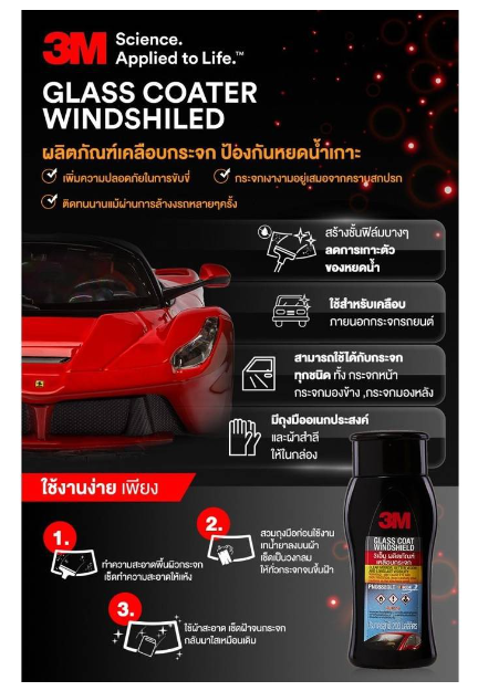 ? 2. 3M Glass Coater Windshield ผลิตภัณฑ์เคลือบกระจกป้องกันหยดน้ำเกาะ PN08889LT ขนาด 200 มิลลิลิตร 1 ขวด
