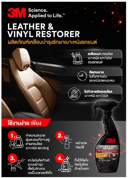 ✅ สำหรับคนรักรถแต่ไม่มีเวลาในการดูและเบาะหนังแท้ หนังเทียม ไวนิล คอนโซลหน้ารถ ผลิตภัณฑ์ 3M LEATHER & VINYL RESTORER [ผลิตภัณฑ์เคลือบเงาเบาะหนังและไวนิล] เป็นทางเลือกที่ช่วยให้คุณประยัดทั้งเงินและเวลาในการบำรุงรักษาเบาะหนัง ทั้งสีอ่อนและสีเข้มให้ดูมีชีวิตชีวา ยืดอายุการใช้งาน ป้องกันการแห้งกรอบ ให้เหมือนใหม่อยู่เสมอ
