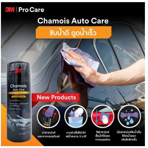3M Car Wipe สามารถใช้ซับน้ำหลังจากการล้างรถและยังสามารถเช็ดทำความสะอาดภายนอกและภายในรถร่วมกับผลิตภัณฑ์ทำความสะอาดอื่นๆ ด้วยสูตรพิเศษ 3M Car Wipe นอกจากจะสามารถซับน้ำได้ดีแล้ว ยังคงทน ไม่ฉีกขาดง่าย