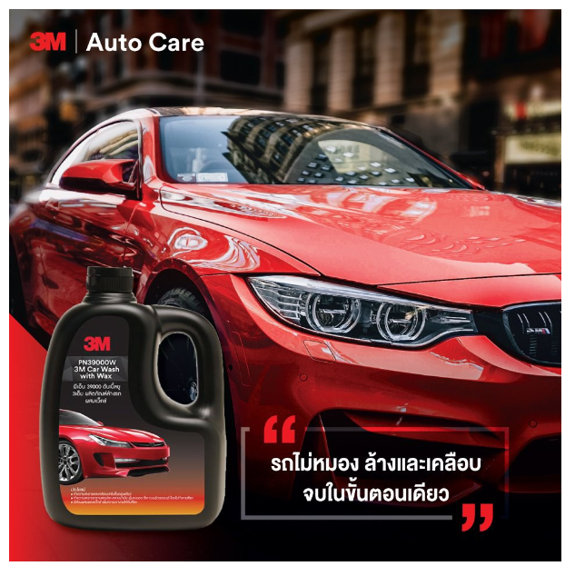 ✨ 3M CAR WASH WITH WAX 1000ML. ผลิตภัณฑ์แชมพูล้างรถ สูตรผสมแวกซ์ ทั้งล้างและเคลือบเงาในขั้นตอนเดียว "สินค้าตามมาตรฐาน อายุของสินค้าจะอยู่ได้ 3 ปี นับจากปีที่ผลิต" ✅ สูตรพัฒนาพิเศษสำหรับรถยนต์ช่วยขจัดคราบสกปรกโดยไม่ทำลายพื้นผิวรถยนต์ ✅ ผสมแวกซ์คุณภาพเพื่อให้ได้คุณสมบัติ ล้างและเคลือบเงา ในขั้นตอนเดียว ✅ PH- Balance ปลอดภัยต่อผู้ใช้และสีรถยนต์ ✅ นวัตกรรม 3M Technology Gloss Agent ช่วยเพิ่มความเงา ✅ มอบความชุ่มชื่นและลื่นให้สีรถยนต์ทุกประเภท ✅ กลิ่นหอมอ่อนโยน ไม่ฉุนแสบจมูก ✨ 3M CAR WASH WITH WAX 1000ML. แชมพูล้างรถ สูตรผสมแวกซ์ ทั้งล้างและเคลือบเงาในขั้นตอนเดียว ช่วยให้คนรักรถ แต่ไม่มีเวลา ดูแลรถคุณได้ง่ายขึ้น สูตรพัฒนาพิเศษสำหรับรถยนต์ช่วยขจัดคราบสกปรก คราบฝุ่นละออง คราบน้ำมัน โดยไม่ทำลายพื้นผิวรถยนต์ ด้วยนวัตกรรมพิเศษเฉพาะ 3M Technology Gloss Agent ช่วยเพิ่มความเงา ให้ความเงางามหลังการล้าง เพื่อให้รถสะอาด เงางาม ล้างและเช็ดออกง่าย ไม่ทิ้งคราบ ✨ค่า PH- Balance ปลอดภัยต่อผู้ใช้และสีรถยนต์ มอบความชุ่มชื่นและลื่นให้สีรถยนต์ทุกประเภท ด้วยกลิ่นหอมอ่อนโยน ไม่ฉุนแสบจมูก ให้ความเพลิดเพลินตลอดการดูแลรถของคุณ ? ขั้นตอนการล้างรถดังนี้ ? ฉีดน้ำล้างฝุ่นหรือคราบสกปรกหนักเบื้องต้น ออกจากพื้นผิวรถยนต์ ? ผสม 3M CAR WASH WITH WAX 1000ML. ผลิตภัณฑ์แชมพูล้างรถ สูตรผสมแวกซ์ ด้วยอัตราส่วน 1 : 60 (หรือ 100 มล. ต่อน้ำ 1 ถังเล็ก) ? ใช้ฟองน้ำจุ่มผลิตภัณฑ์ แล้วเช็ดทำความสะอาดให้ทั่ว จากบนลงล่าง ? ล้างน้ำให้สะอาดอีกครั้ง แล้วใช้ผ้าไมโครไฟเบอร์ หรือผ้าชามัวร์เช็ด หรือซับน้ำให้แห้ง
