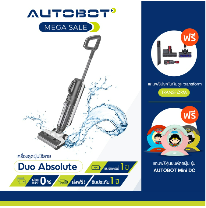 (H-004) AUTOBOT Duo Absolute เครื่องดูดฝุ่น และ เครื่องล้างพื้น ในตัวเดียว FREE mini DC และประกันเพิ่มอีก 1 ปี