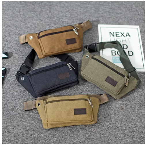 BAG95-(W111)กระเป๋าคาดเอวผ้าแคนวาส ขนาดพอดี ใส่แล้วไม่ตุง