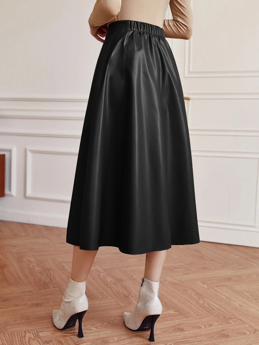BIZwear กระโปรง เอวสูง หนัง PU ทรงบาน jj-57