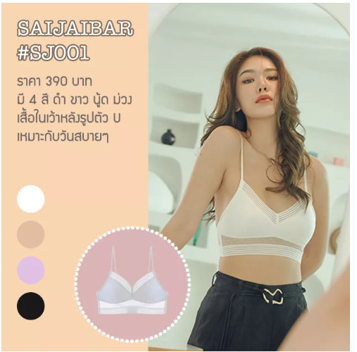Sai.jai. "Bra" #Sj001 .ราคา 390 บาทOrder now Line@ : saijai22 .เสื้อชั้นในหลังเว้า สวมใส่สบาย ไม่อึดอัด เนื้อผ้ายืดหยุ่นดี ผ้านิ่ม ถนอมหน้าอก มีโครงข้างตัวอยู่ทรงสวยเสื้อเป็นเสื้อแฟชั่น เก๋ๆ ได้เลยเนื้อผ้าซีทูรน่ารัก คิ้วๆ มี 3 ตะขอ ปรับขนาดได้ Size รอบ อก (หน่อยวัดขนาด นิ้ว) A: 29-32 B: 32-34 C: 34-36 D: 36-39 สี : ขาว / ดำ / เนื้อ ราคา 390 บาท #saijaibra #ใส่ใจบรา #ไม่มีฟองน้ำ #บราหลังเว้า #บราหลังยู #ใส่สบาย #เสื้อชั้นใน #บราซิลิโคลน #บราซิลิโคนไร้สาย #บรา #บราแฟชั่น #บราปีกผีเสื้อ#บราไร้สาย #bra ——————————————สั่งสินค้าLine@ : saijai22 #saijaikloset #ใส่ใจ #รัดเอว #โคเซต #เอวเล็ก #ผอม #เอวคอด #หุ่นดี