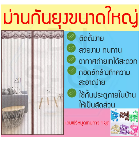 ไม่ต้องกังวลเรื่องแมลงในบ้านอีกต่อไปด้วยม่านประตูกันยุงดูดปิดอัตโนมัติเหมาะสำหรับบ้านที่มีสมาชิกในบ้านเป็นเด็กเล็ก ผู้สูงวัยหรือผู้ที่ใช้ไม้เท้าพยุงเดินและเหมาะในการป้องกันแมลงบินทุกชนิดม่านประตูกันยุง จะทำให้คุณไม่ต้องกังวลเรื่องลืมปิดประตูการเดินผ่านประตูจะเป็นเรื่องสะดวกสบาย แม้ว่าในสองมือของคุณจะไม่ว่างเปิดปิดประตูก็ตามม่านประตูกันยุงไซส์พิเศษผลิตมาเป็นรุ่นอย่างดี รุ่นพรีเมี่ยมเนื้อผ้าหนา แม่เหล็กเส้นใหญ่ทำให้มีน้ำหนักต่อผืนค่อนข้างมากควรใช้หมุดเทป 2 ชุดต่อผืน