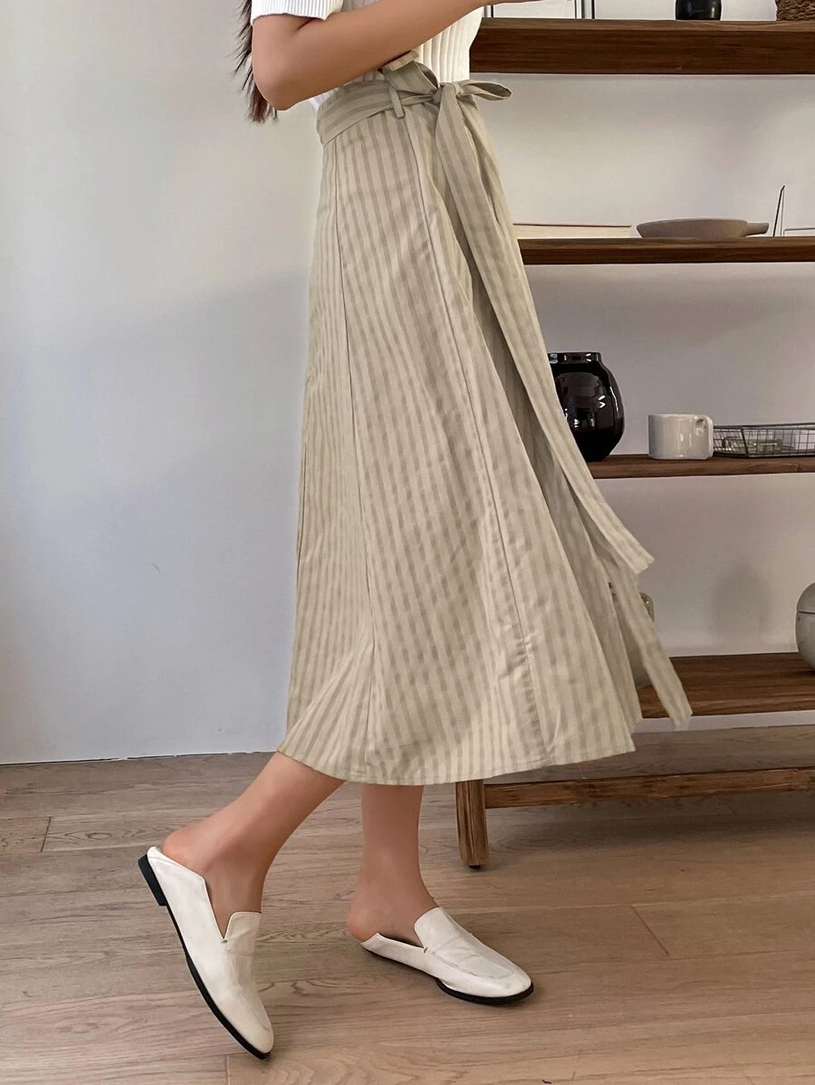 DAZY กระโปรง เอวสูง ลายทาง ปมด้านหน้า jj-31