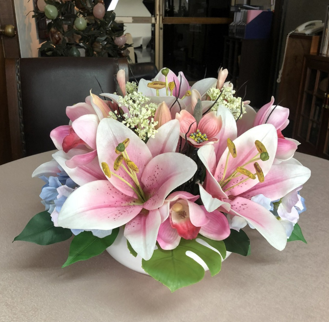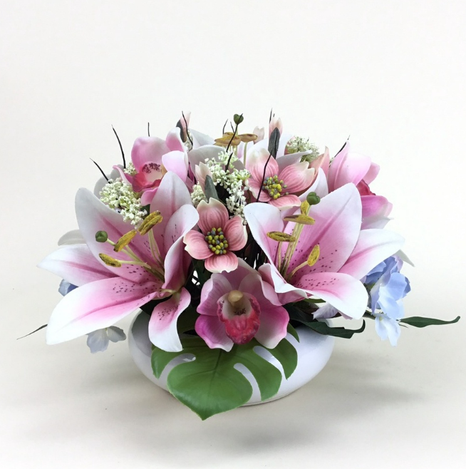 - แจกันดอกไม้ประดิษฐ์รวมนานาพันธ์ สีสวยหวานสดใส