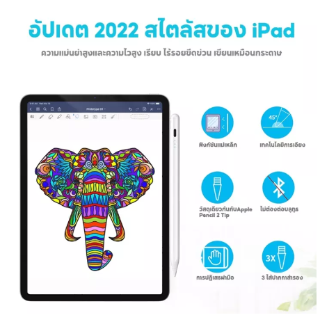 ข้อมูลเฉพาะของ ปากกา iPad ไอแพด Pencil stylus 10th Gen ปากกาสไตลัส ปากกาทัชสกรีน stylus pen วางมือ+แรงเงาได สำหรับ ไอแพด ipad Air4 10.9 Gen7 Gen8 10.2 Pro 11 12.9 2018 2020 Air 3 10.5 Mini 5 2023