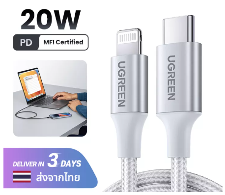 ข้อมูลเฉพาะของ UGREEN MFI USB C to lightningสาย iPhone ชาร์จเร็วสายชาร์จสาย ชาร์จไอโฟน Apple Charging Cable Compatible with iPhone 14 13 Pro Max iPhone 14 Plus iPad AirPods Pro Model: 70523
