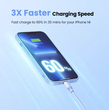 20W speedy power delivering can juice up your iPhone 13 from 0%-60% within almost 30 mins; trickle charging mode will be activited from 80%, in case the voltage or the current is too big, also this trickle charging mode is beneficial to Airpods(Need PD USB C Charger Adapter).