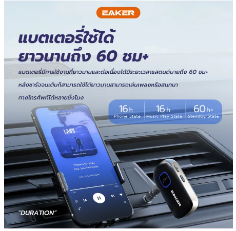 ข้อมูลเฉพาะของ EAKER Car Bluetooth Music Receiver อุปกรณ์ตัวรับสัญญาณบลูทูธ บลูทูธติดรถยนต์ คอมพิวเตอร์ผ่านช่อง AUX 3.5mm Jack รองรับ TF Card เสียงดีเพิ่มเบส รุ่น RC13