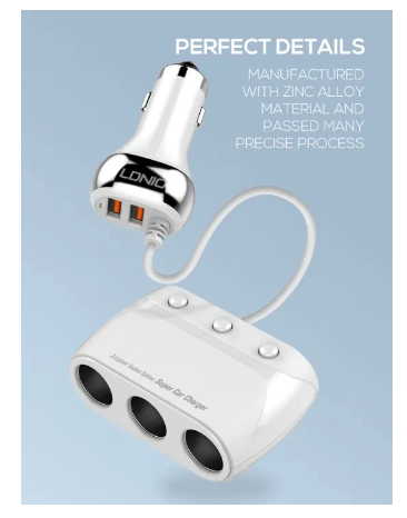 ข้อมูลเฉพาะของ LDNIO ที่ชาร์จในรถ ฟาสชาร์จ QC3.0 Super Car Charger ช่องเสียบจุดบุหรี่ 3 พอร์ตยูเอสบี 4 รุ่น C504Q รับประกัน 1 ปี