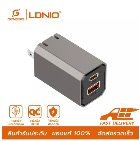 หัวชาร์จเร็ว LDNIO 2 USB-C+1 USB-A PD 30W A2527C