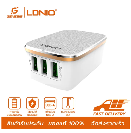 GE32-LDNIO A3304 อแดปเตอร์ 3 USB Port Travel Charger For Mobile Phone 5V/3.4A US/EU Plug Fast Charging รับประกันของแท้