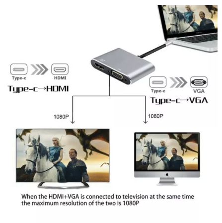 1X Type - C TO HDMI VGA รองรับข้อมูลเสียงจอแสดงผลเกียร์ตัวแปลง USB 3.1 สำหรับ 4 K อะแดปเตอร์ Multifunction Terminal TV วิดีโอ