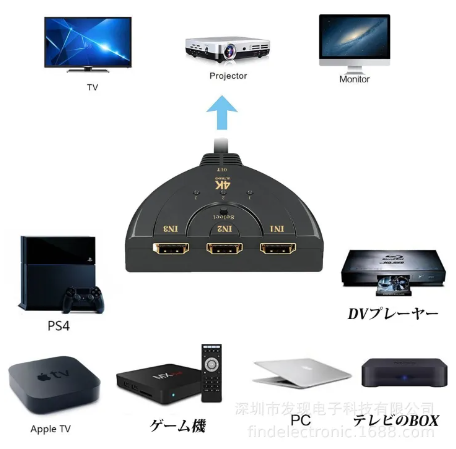 ข้อมูลเฉพาะของ 4K*2K 3D 3-Port HDMI Switch 1.4b 4K Switcher HDMI Splitter 3 in1 out Cable
