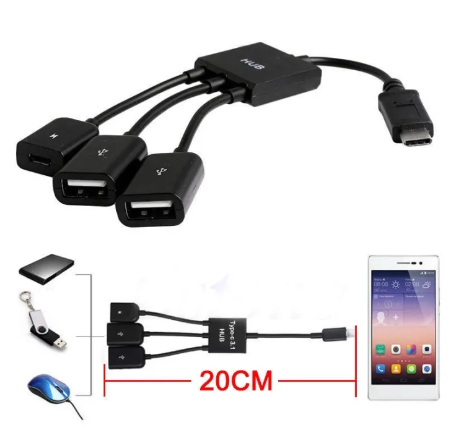 Type C Cable 3 in 1 USB C Type C OTG Host Cable Hub Cord Adapter Connector Splitter