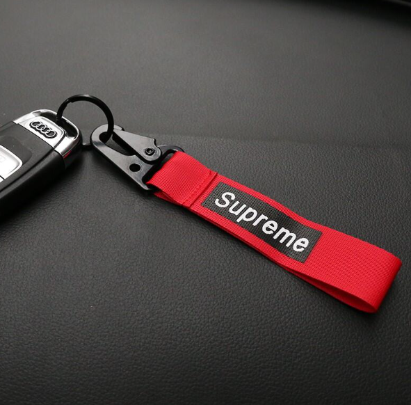 GX168-พวงกุญแจรถยนต์ ผ้าแคนวาส จี้รูป Supreme แบบสร้างสรรค์