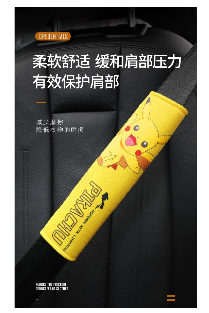 Name: Pikachu seat belt shoulder guard Fabric: Short pile Size: 22.5*6.5cm, expanded 22.5*18cm 1pcs