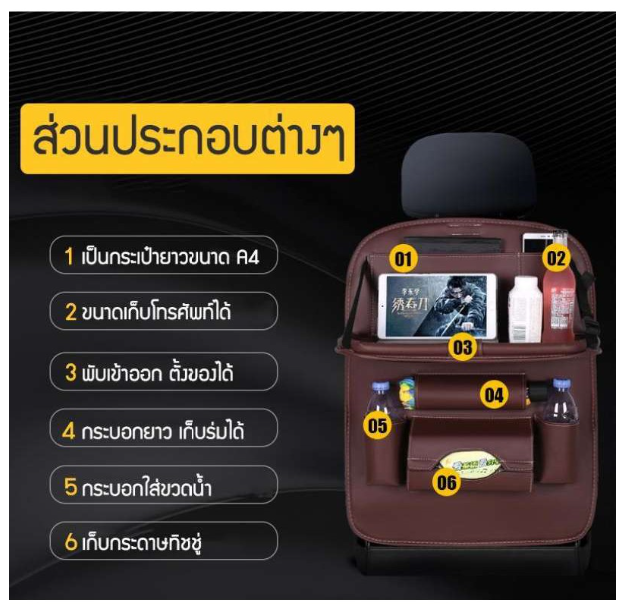 ที่ใส่ของหรือสัมภาระอเนกประสงค์ด้านหลังเบาะรถยนต์ เพิ่มพื้นที่เก็บของในรถยนต์ จุของได้เยอะ หยิบใช้งานสะดวก และช่วยจัดระเบียบในรถยนต์ ได้เป็นอย่างดี