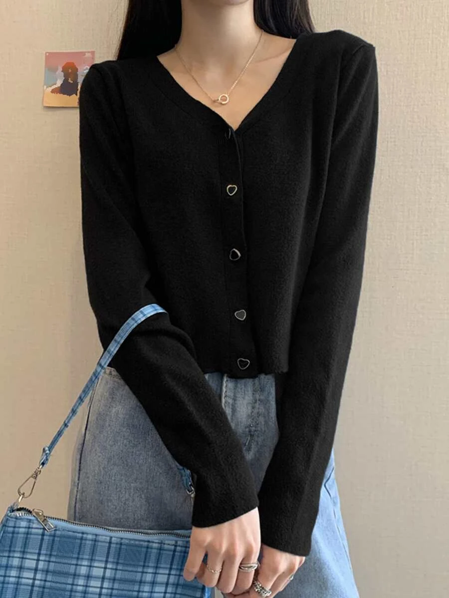 Honeyspot เสื้อคาร์ดิแกน ครอป สีพื้น กระดุมแถวหน้า i-54