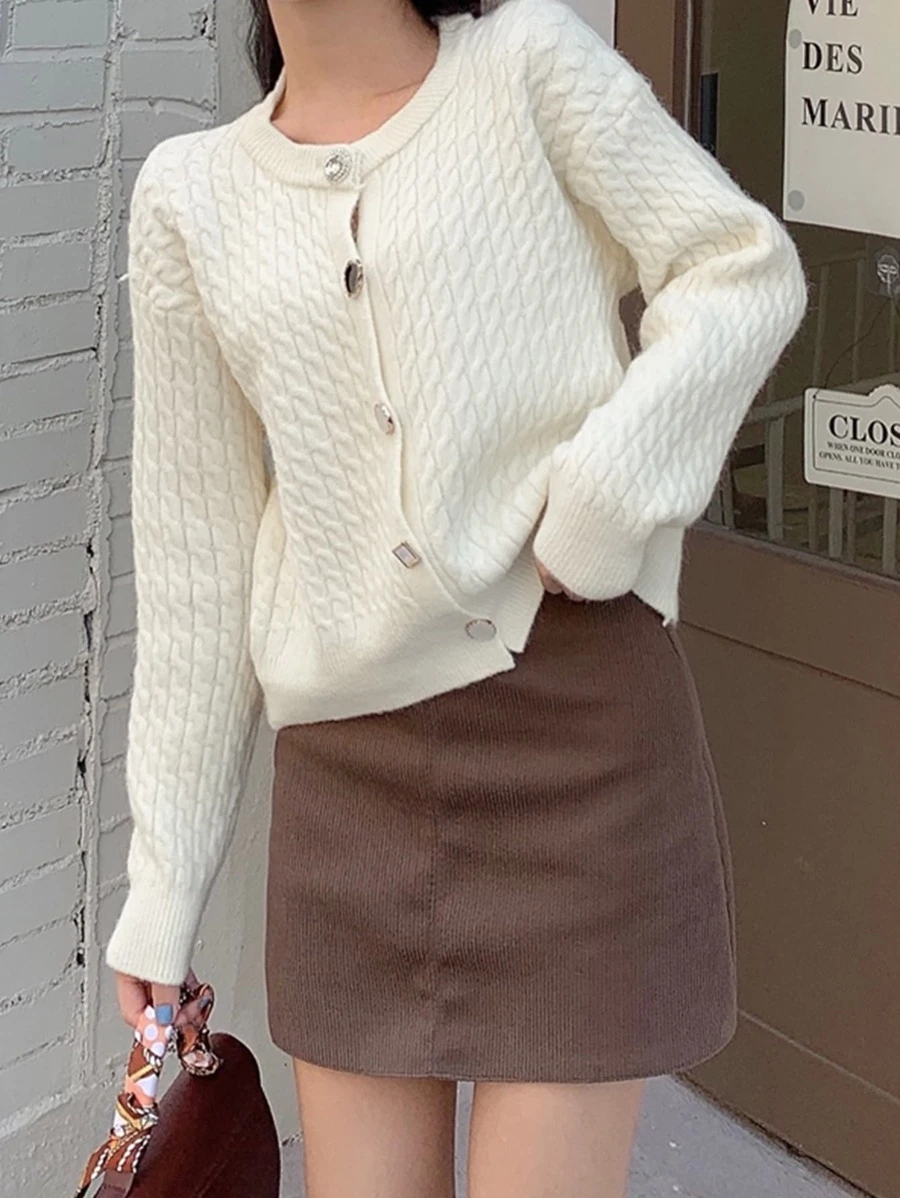 Honeyspot คาร์ดิแกน ถักลายสายเคเบิล ไหล่ตก i-47