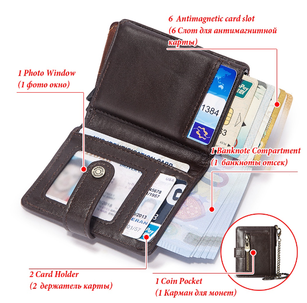HU24-Humerpaul RFID กระเป๋าสตางค์หนังแท้มีช่องเสียบการ์ดสำหรับผู้ชาย