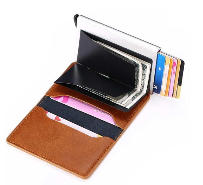 HU27-Humerpaul หนัง PU กระเป๋าสตางค์อลูมิเนียมอลูมิเนียมผู้ถือบัตรเครดิตบัตรประจำตัวประชาชน