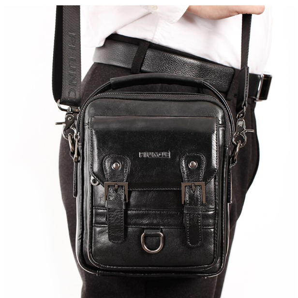HU52-ผู้ชายหนัง 'S กระเป๋าสะพายไหล่ Multifunctional Casual ชายเล็กกระเป๋าสะพายข้างใหญ่ความจุ10.5