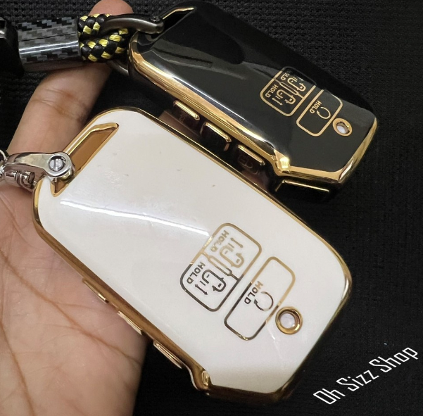 เคสรีโมทรถ KIA Carnival 2022 ดำเงาเส้นสีทอง และสีขาวเส้นสีทอง ดูเรียบหรู (Black Gold-Line TPU Key Case)