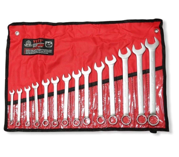 - ประแจแหวนข้าง-ปากตาย Yeti 14 ตัวชุด เบอร์ 8-9-10-11-12-13-14-15-16-17-19-21-22-24 mm.
