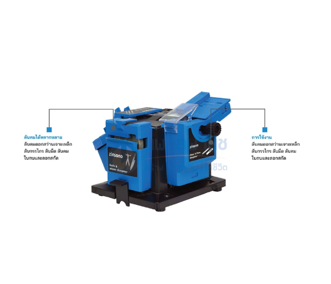 เครื่องลับคมอเนกประสงค์ ZINSANO ลับคมอุปกรณ์ต่าง ๆ ให้มีความคมอีกครั้งอย่างง่ายดาย ไม่ว่าจะเป็นดอกสว่านเจาะเหล็ก, ลับกรรไกร, ลับคมใบกบ และดอกสกัด หรือลับมีด ด้วยใบขัดขนาด 56 มิลลิเมตร ลับคมดอกสว่าน HSS ได้ตั้งแต่ขนาด 3-13 มม. และแผ่นเจียรขนาด 6-51 มม. โดยไม่จำกัดความกว้างของแผ่นเจียร พร้อมแม่เหล็กช่วยยึดชิ้นงาน ปรับเอียงได้ตังแต่ 15-50 องศา เพิ่มความสะดวกในการใช้งานยิ่งขึ้น