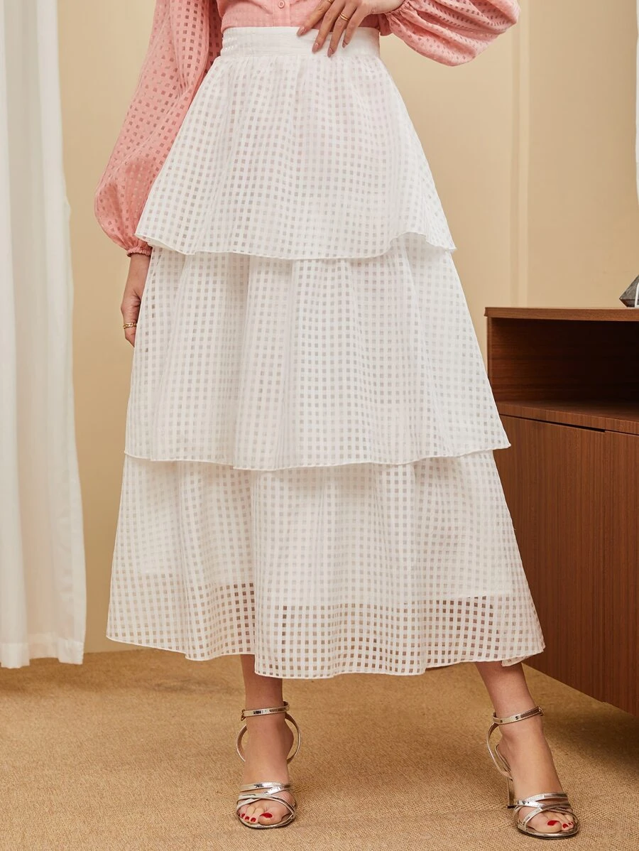 Modely กระโปรง เอวสูง ชายแต่งเลเยอร์ jj-46