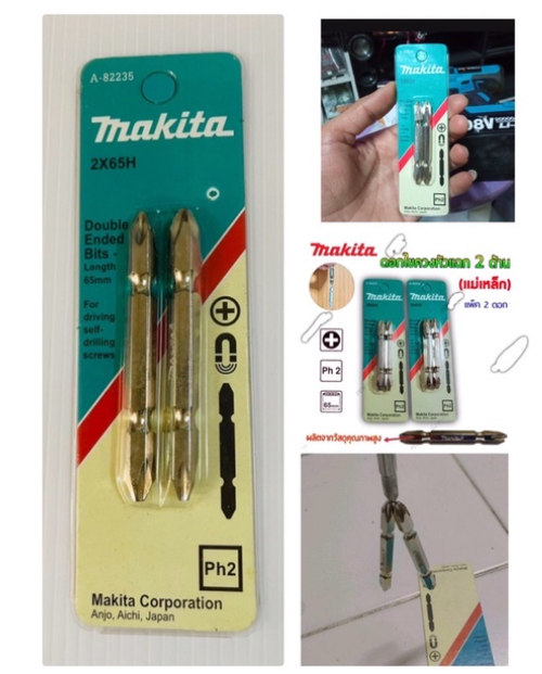 Makita มาร์กีต้า ลดราคา จ้า ดอกไขควงหัวแฉก 2 ด้าน 2x65H No. A-82235 makita มาร์กีต้า แผง 2 ดอก ราคาถูก ราคาส่ง ราคา ต่อแผง