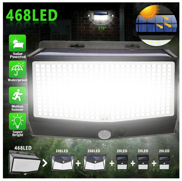 ชื่อสินค้า: โคมไฟติดผนังสวนพลังงานแสงอาทิตย์ 468LED