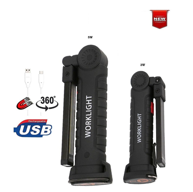 Feature: Plastic shell wrapped in a layer of carbon black, feel good, non-slip. Come with magnet and hook, Folding design, easy to use in a small space inside. High COB LED,Low COB LED and LED light 3-different lighting modes to meet your lighting needs. LED bulbs, green energy saving and environmental protection, the use of longer time. Built-in battery, you can use the USB cable to charge. Note:The small one no USB dust plug Product parameters: Model:Big,Small Light bulb: 1*COB light strip +1*LED Light: High COB LED,Low COB LED,LED material: plastic+metal Size: Big:14.8*4.7cm Small:11*3.6cm Weight: Big:145g Small:67g Power supply: built-in battery Package Included: 1*LED light 1* USB charging line