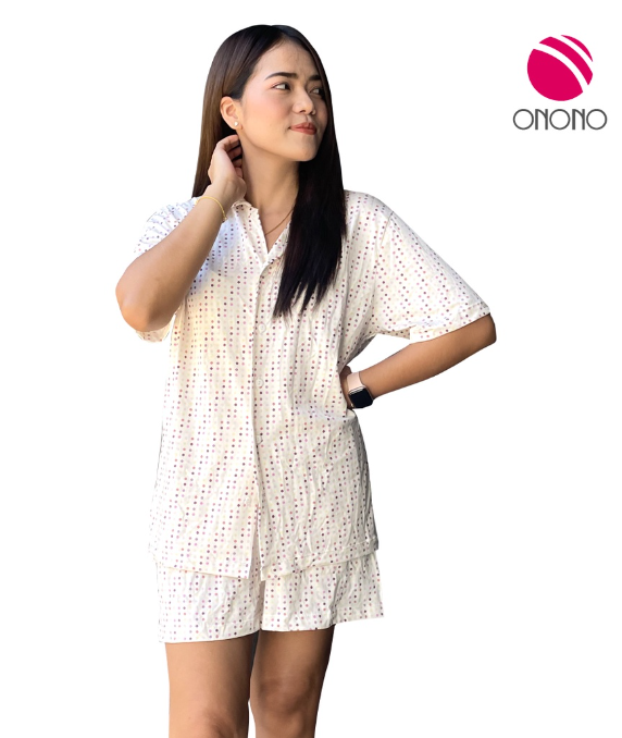 จุดเด่นสินค้า / ประโยชน์ : เป็นชุดนอนเสื้อแขนสั้นคอปก กระดุมผ่าหน้า+กางเกงขาสั้น
