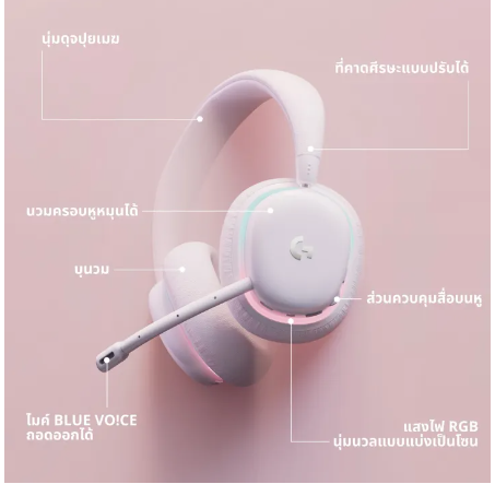 ข้อมูลเฉพาะของ Logitech G735 Wireless Gaming Headset Aurora Collection หูฟังเกมมิ่งไร้สาย พร้อมไฟ LIGHTSYNC RGB ปรับแต่งได้ LIGHTSPEED Bluetooth ไมค์ถอดได้ - White