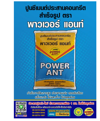 ข้อมูลเฉพาะของ ปูนประสานคอนกรีต 1 กก. ตรา มดดำ (พาวเวอร์ แอ้นท์) ซ่อมรอยร้าว ปูกระเบื้อง ยึดเกาะแน่น ไม่หลุดล่อน ปูนสำเร็จรูป ผสมน้ำใช้ได้เลย