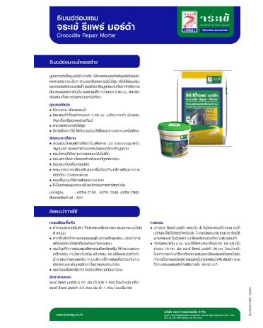 - ซ่อมผิวซีเมนต์ รอยแตกร้าว รอยบิ่น ความหนาตั้งแต่ 1-13 มม.