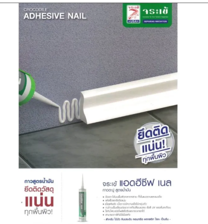 จระเข้ แอดฮีซีพ ควิก เป็นกาวตะปูอเนกประสงค์คุณภาพสูง สูตรน้ำ สำหรับงานก่อสร้าง ซ่อมแซมทุกประเภท พลังการยึดติดสูงมากใช้ติดวัสดุแทนการ ตอกตะปู มีแรงยึดติดเบื้องต้นสูง ใช้ได้ทั้งภายในและภายนอก ยึดติดได้ดีกับวัสดุที่มีรูพรุน เช่น ไม้ ปูน คอนกรีต ไฟเบอร์ซีเมนต์ หินธรรมชาติ หินประดับ ไวนิล อิฐ บล็อก เป็นต้น