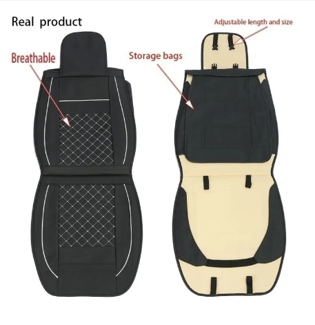 • วัสดุ: หนัง Pu คุณภาพสูงพร้อมฟิลเลอร์โฟม 5 มม. วัสดุนี้ซักและระบายอากาศได้ดี ผ้าคลุมเบาะช่วยปกป้องเบาะรถจากสิ่งสกปรกการสึกหรอ