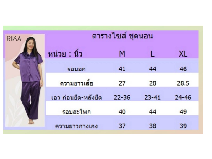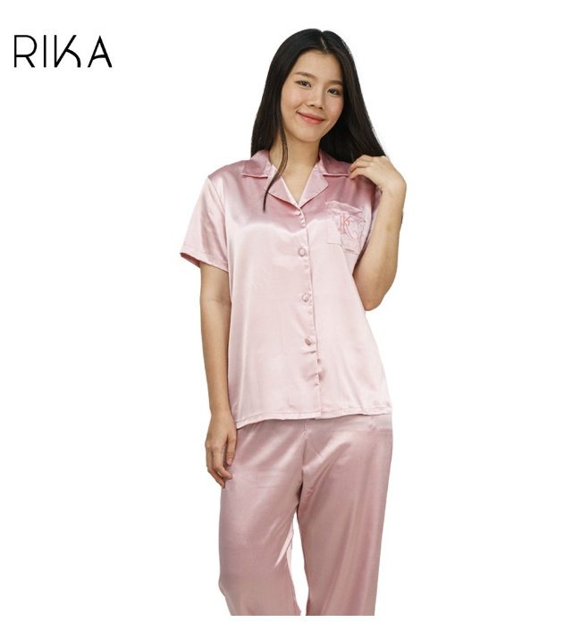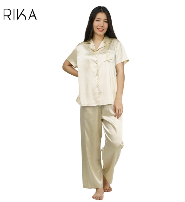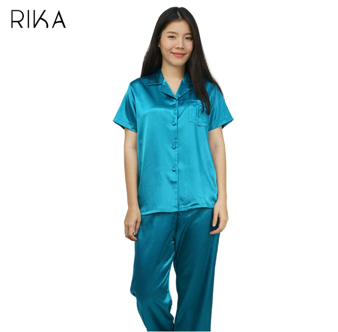 RIKA ชุดนอนปาจามา ผ้าซาติน ชุดเสื้อ+กางเกงขายาว FV3029 เนื้อนุ่ม ใส่แล้วให้สัมผัสที่เย้น สบายตัว