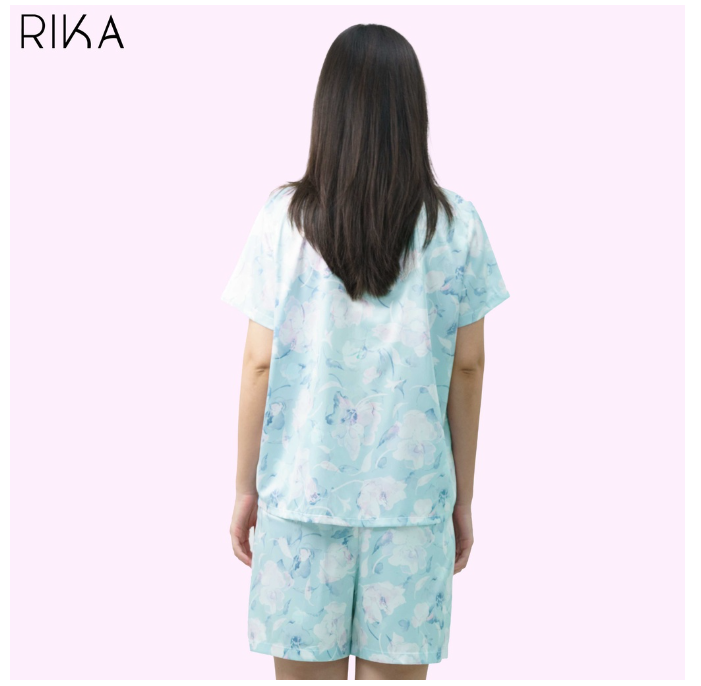 Rika ชุดนอน ผ้าซาตินพิมพ์ลาย ชุดเซต เสื้อ+กางเกง ขาสั้น  FV3027