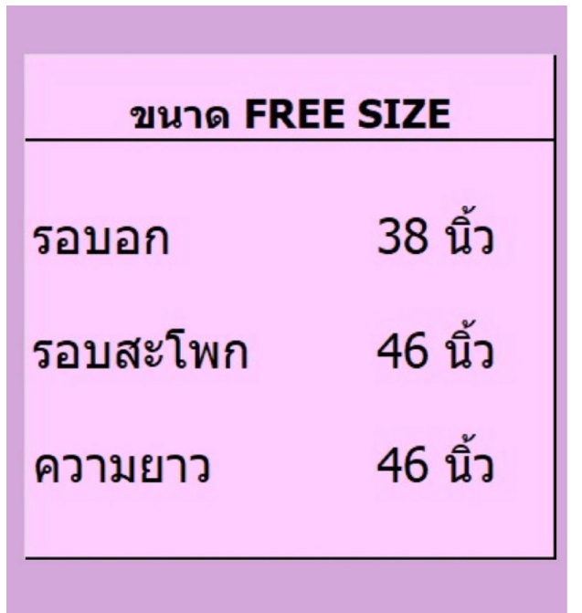 รอบอกถึง 38 นิ้ว รอบสะโพกถึง 46 นิ้ว ใส่สวย น่ารักทุกวัย