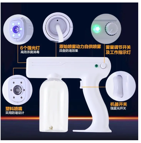 ข้อมูลเฉพาะของ เครื่องพ่นแอลกอฮอล์ ปืนพ่นไอน้ำนาโน ปืนพ่นแอลกอฮอล์อัตโนมัติ ปืนฉีดพ่นไร้สาย ปืนฆ่า แสงสีฟ้า รุ่น1697
