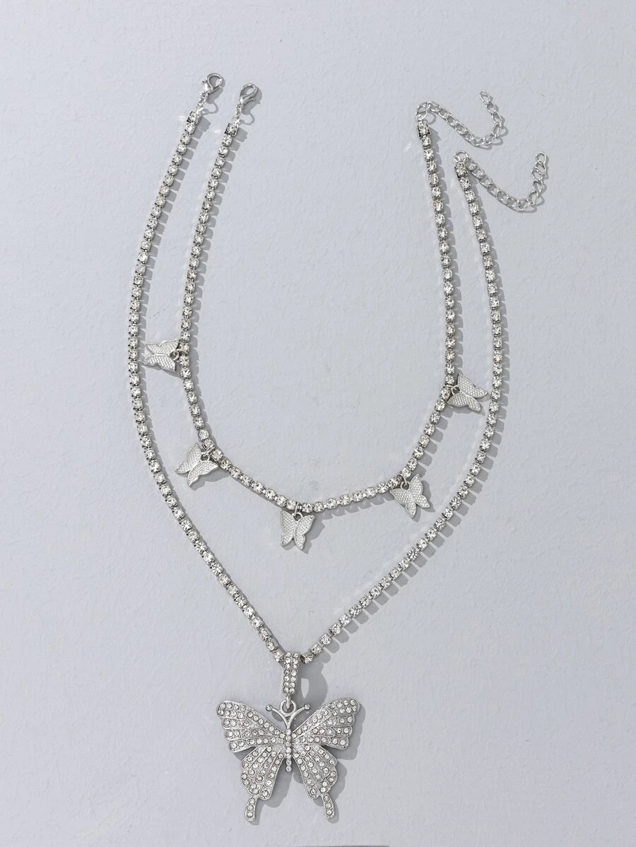 ROMWE สร้อยคอ ตกแต่ง พลอยเทียม การออกแบบ ผีเสื้อ 2 ชิ้น kk-165