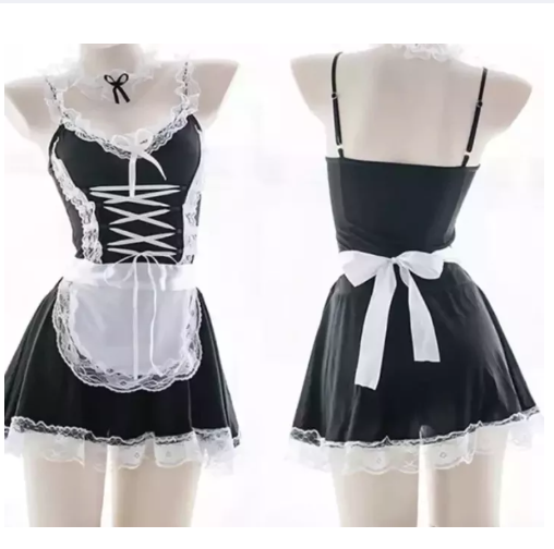 ชุดคอสเพลย์เซ็กซี่แม่บ้าน สีดำแต่งลูกไม้สีขาว (สินค้ามาพร้อม : ที่รัดคอ/รัดข้อมือ/คาดผม/จีสติง) ..ขนาดฟรีไซส์ (สาว SML ใส่ได้).. ️