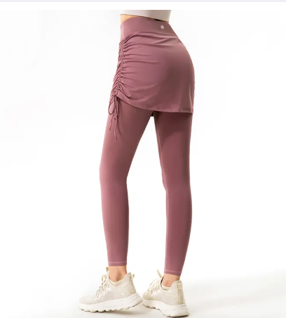 SF124-กางเกงโยคะเอวสูงสายรัดสายรัดกระโปรงสั้นเก้าจุดกางเกงสาวใหม่ฤดูใบไม้ร่วงปลอม Wwo-ชิ้นป้องกันแสง Culottes กีฬาวิ่งออกกำลังกายการฝึกอบรม Leggings กางเกง