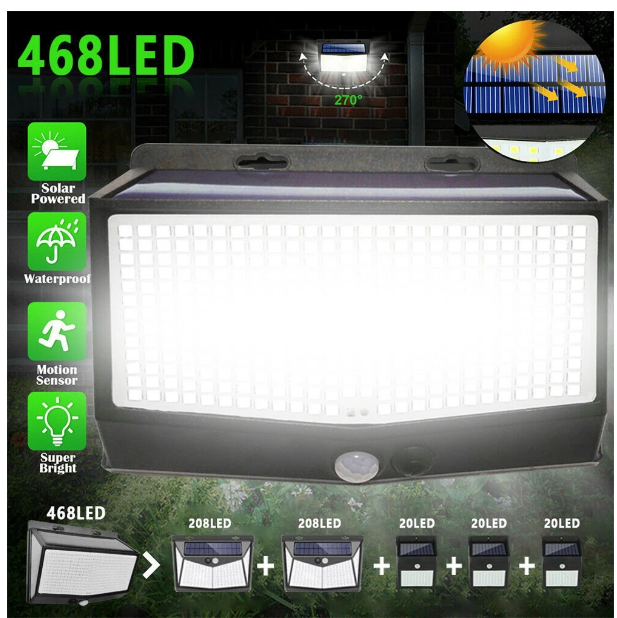 ชื่อสินค้า: โคมไฟติดผนังสวนพลังงานแสงอาทิตย์ 468LED